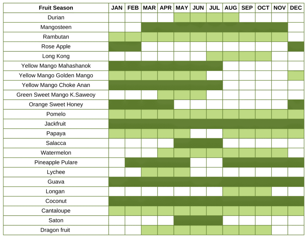 Thailand’s year-round growing seasons allow us to deliver fresh, high-quality fruits at their peak. From summer mangoes to winter longans, we align exports with natural harvest times to ensure optimal taste and freshness.